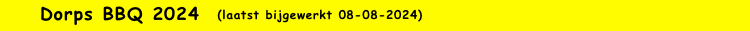 De BBQ was op 7 september 2024 vanaf 16:00 tot ca. 20:00 uur. op het parkeerterrein naast de Kerk. foto's van deze BBQ en van eerdere jaren: evenementen.dorpsvereniging.nl |