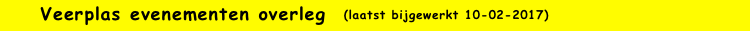 Verantwoordelijken Grote evenementen vallen onder de verantwoording van de Evenementenmanager van de gemeente Haarlem. Kleine activiteiten vallen onder de verantwoording van de organisator, b.v. de horeca exploitant. * Vanaf 2017 valt het terrein onder het 'Evenementenbeleid' van de gemeente Haarlem en gelden er andere uitgangspunten. * | Actueel Namens de Dorpsvereniging heeft momenteel (2016) bestuurslid José Molenaar zitting in de Echo-groep. De Echo-groep leide een paar jaar een marginaal bestaan daar zij nauwelijks meer bijeen kwam (2013-2016). In 2017 is de grep weer 2x bijeengeweest. * In de laatste jaren werd er vaak al een evenementen vergunning afgegeven voordat de formele bezwaar-procedure werd afgewacht. Hier tegen hebben Dorpsvereniging en Wijkraad Parkwijk-Zuiderpolder in 2016 gezamenlijk geprotesteerd bij de gemeente Haarlem. Toegezegd is de procedure zorgvuldiger te gaan volgen. * Er wordt momenteel (begin 2017) in de gemeente Haarlem gewerkt aaneen nieuw bestemmingsplan voor Penningsveer (Veerpolder en Schoteroog) en ook aan een nieuw Evenementenbesluit. * | ||||